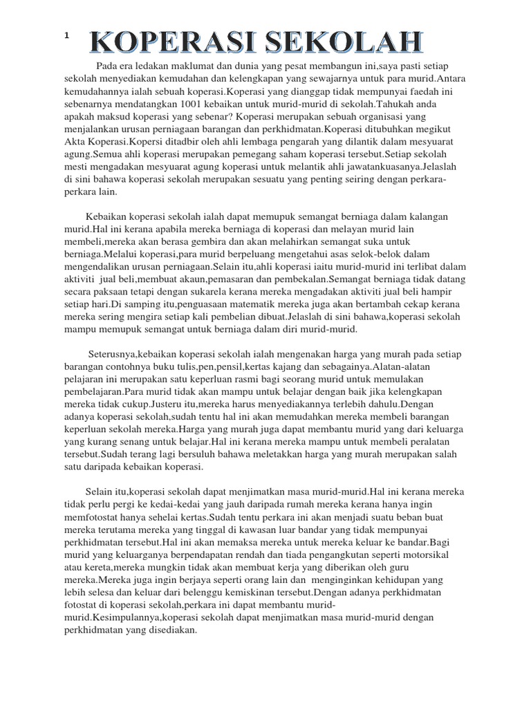 Contoh Karangan Spm Peranan Koperasi Sekolah Karangan Net